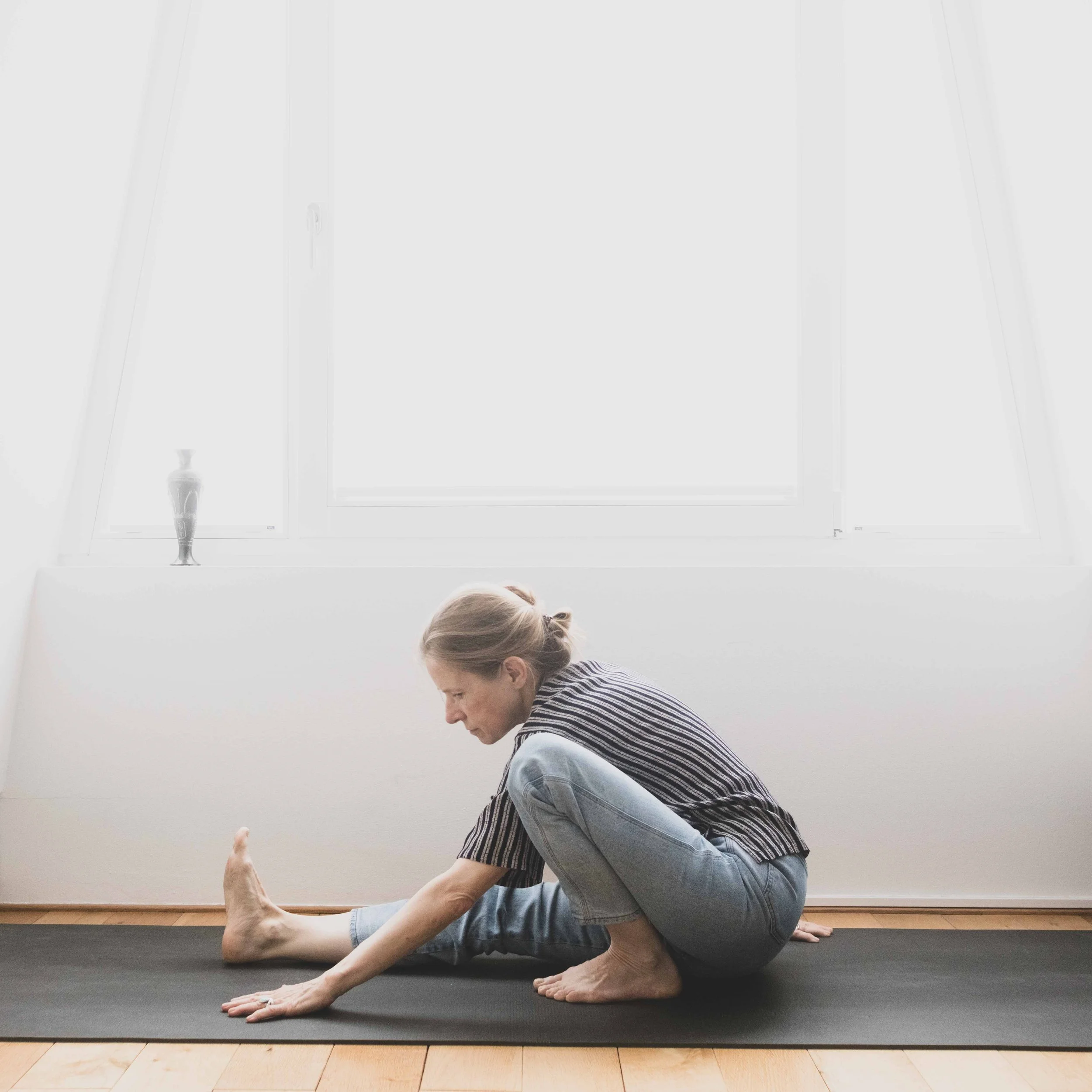 Right now, the priority is to find out what is possible with these limitations and the pain in my left groin. The next step is to work patiently on regaining mobility and, with the help of familiar techniques (breathing, relaxation, muscle engagement), to experience the postures as pleasant again.